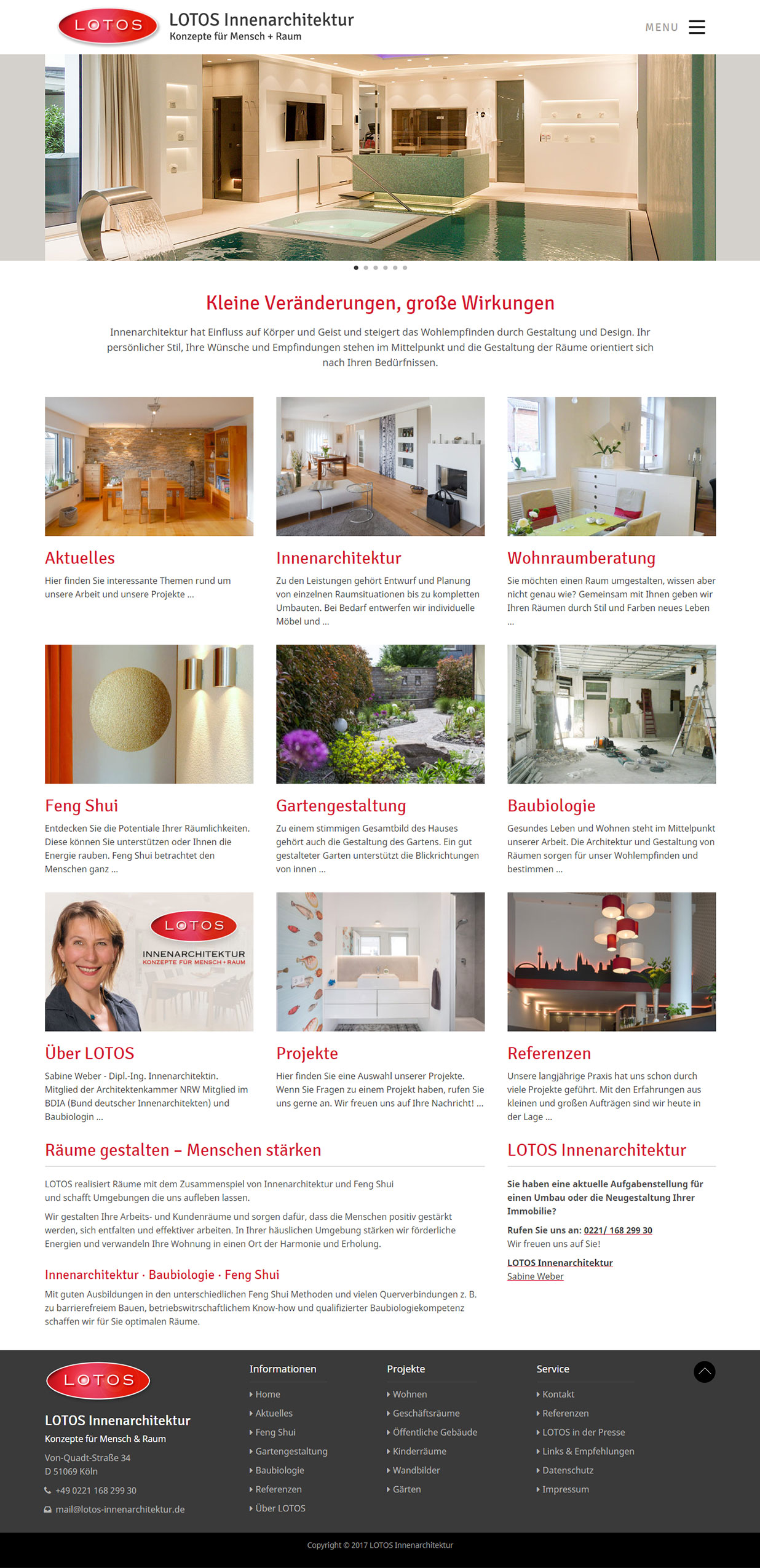 Für die Innenarchitektin Sabine Weber und ihrer Marke LOTOS Innenarchitektur haben wir die neue Website entwickelt. Die Fülle der Informationen wurde übersichtlich strukturiert und die Projekte der erfolgreichen Innenarchitektin sprechen für sich.